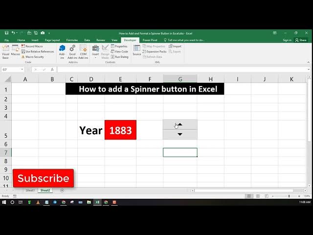 How to add and format a Spinner button in Excel